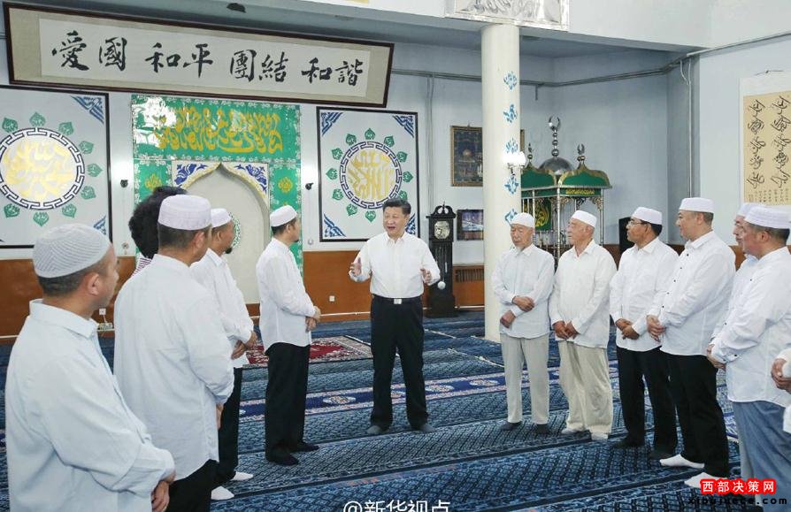 新華網(wǎng)北京7月19日電習(xí)近平總書(shū)記19日上午來(lái)到寧夏回族自治區(qū)銀川市新城清真寺了解宗教活動(dòng)開(kāi)展情況。在禮拜大殿,習(xí)近平與寧夏伊斯蘭教界人士親切交流,通過(guò)他們向廣大穆斯林群眾致以親切問(wèn)候和良好祝愿。習(xí)近平說(shuō),我國(guó)的各民族和宗教是在5000多年的文明史中孕育發(fā)展起來(lái)的,只有落地生根才能生生不息。習(xí)近平希望大家繼續(xù)發(fā)揚(yáng)愛(ài)國(guó)愛(ài)教傳統(tǒng),在脫貧致富奔小康的道路上發(fā)揮積極作用。在場(chǎng)的伊斯蘭教界人士表示,將認(rèn)真貫徹落實(shí)全國(guó)宗教工作會(huì)議精神,既念好古蘭經(jīng),又念好致富經(jīng),為國(guó)家發(fā)展?fàn)I造和諧的環(huán)境。(文字:新華社記者霍小光,攝影:新華社記者鞠鵬、李濤據(jù)新華社“新華視點(diǎn)”微博報(bào)道)