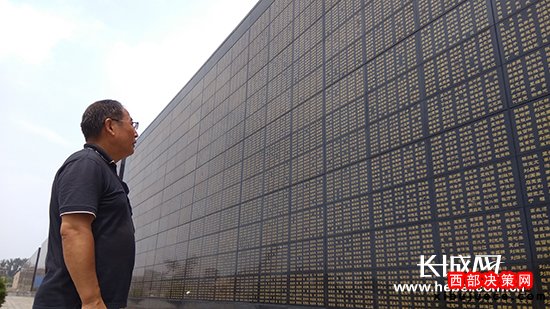 唐山大地震幸存者在地震罹難者紀念墻下緬懷逝去的親人。長城網記者攝