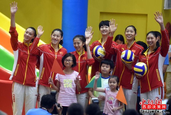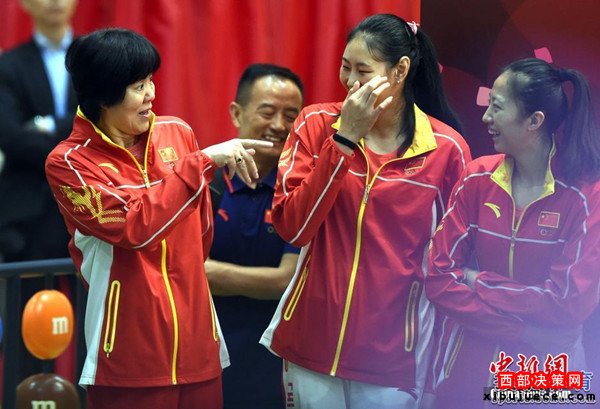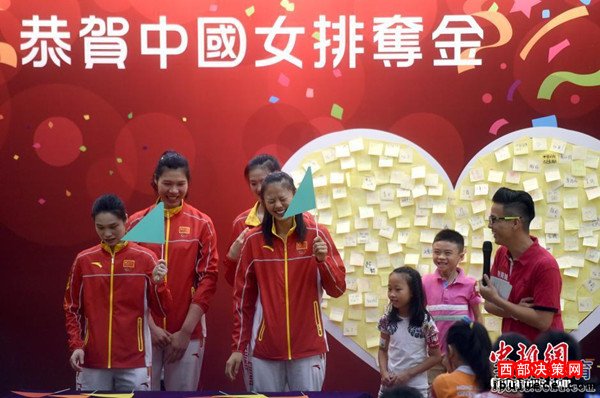 北京時間8月28日,女排隊(duì)員在香港與市民見面。見面會上女排姑娘與當(dāng)?shù)貎和M(jìn)行了互動游戲,女排主教練郎平幽默扮鬼臉令人捧腹大笑。