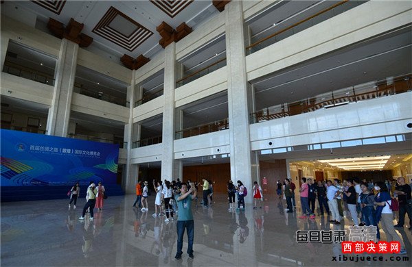 8月30日,“走一帶一路探文博盛會一一‘聚豐杯’全國重點網(wǎng)站、手機報新媒體網(wǎng)絡宣傳周”大型采訪活動采訪團走近敦煌,來到敦煌國際會展中心探訪文博會主會場。