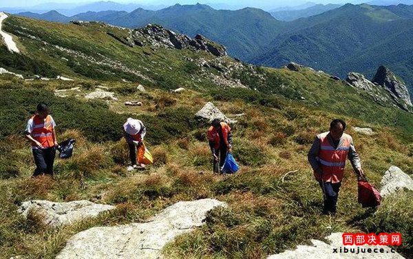 西安保潔員2800米海拔秦嶺山頂撿驢友亂扔的垃圾