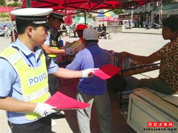 西部決策網(wǎng)訊( 白延紅 )9月2日上午,清澗縣公安局交警大隊(duì)清辛中隊(duì)民警組織走進(jìn)老舍古集市開展交通安全宣傳活動(dòng),受到廣大農(nóng)民朋友的熱烈歡迎。宣傳活動(dòng)期間,民警在集市醒目位置擺放交通事故警示展板,發(fā)放交通安全宣傳材料,認(rèn)真耐心地宣傳交通安全防范知識;耐心講解交通安全法律法規(guī)及酒駕、超速、超員、超載等各類交通違法的嚴(yán)重危害性;向農(nóng)用車駕駛?cè)酥攸c(diǎn)宣傳違法載人、無牌無證、酒后駕駛、駕駛報(bào)廢車輛等嚴(yán)重交通違法的危害和后果;同時(shí),民警現(xiàn)場提醒趕集群眾和駕駛?cè)瞬怀诉`法車、不開違法車、舉報(bào)違法車,教育農(nóng)村駕駛員自覺遵守交通規(guī)則,保障自身和他人的生命財(cái)產(chǎn)安全。