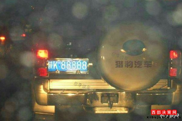 爆料帖稱,懸掛陜西榆林最牛車牌“陜K88888”的車輛為一輛獵豹汽車,并調(diào)侃車牌比車“貴多了”。隨后,又有人在榆林街頭發(fā)現(xiàn)懸掛同一車牌的其它4輛車。