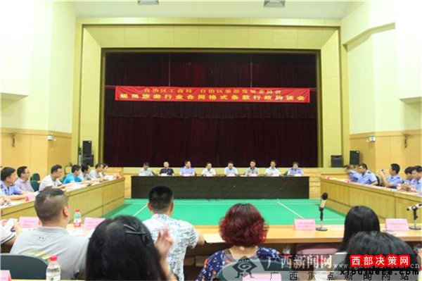 為進一步依法維護旅游經(jīng)營企業(yè)及旅游消費者合法權(quán)益,積極發(fā)揮部門間的監(jiān)管合力,提高旅游市場監(jiān)管效能,提升企業(yè)誠信守法意識,維護良好的旅游市場秩序,促進廣西旅游產(chǎn)業(yè)健康發(fā)展,9月28日,規(guī)范旅游行業(yè)合同格式條款行政約談會在南寧召開。