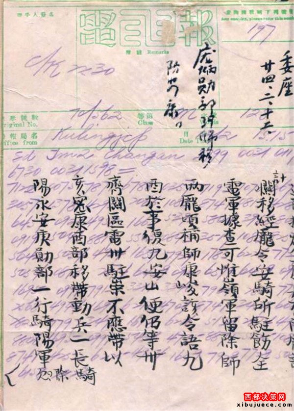 為紀(jì)念中國工農(nóng)紅軍長征勝利80周年,10月3日,陜西省檔案館特舉辦《長征!長征!——紅軍長征到陜北》大型檔案圖片展正式開展,包括楊虎城、張學(xué)良、孫蔚如等關(guān)于“圍剿”紅軍給陜西省政府的電報、信件等40余份珍貴檔案首次展出。