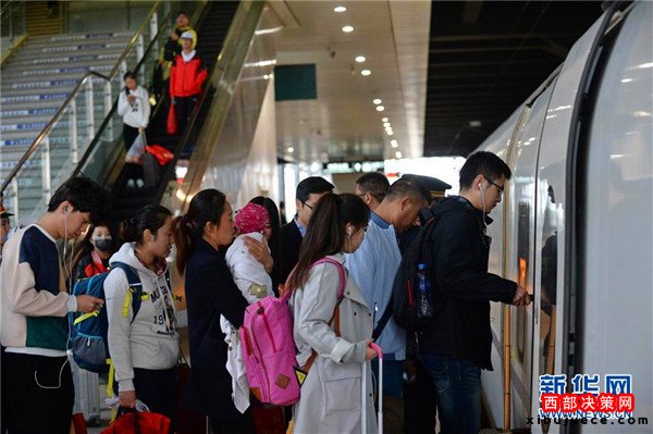 10月7日,旅客在沈陽北站排隊(duì)上車。當(dāng)日是國慶長(zhǎng)假的最后一天,外出游玩、探親的旅客陸續(xù)返程,各地迎來返程客流高峰。