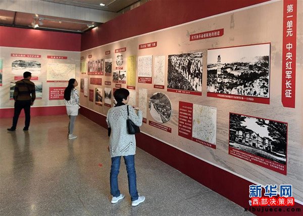 10月8日,參觀者在甘肅省博物館觀看主題展覽。當(dāng)日,甘肅省紀(jì)念紅軍長(zhǎng)征勝利80周年主題展覽在甘肅省博物館開(kāi)展。展覽以“弘揚(yáng)長(zhǎng)征精神堅(jiān)定理想信念”為主題,展示紅軍長(zhǎng)征的光輝歷史,展現(xiàn)了紅軍長(zhǎng)征的光輝征程。