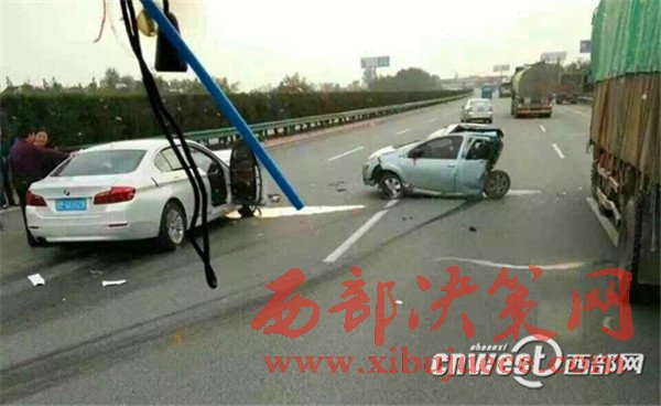 10月16日下午5點左右,西寶高速楊凌西至扶風(fēng)絳帳段,一輛牌照為甘EQ0029的白色寶馬小轎車與其前方行駛的一輛陜AJ835R的銀色比亞迪轎車發(fā)生追尾事故,事故造成比亞迪轎車內(nèi)乘坐的4人當場死亡,寶馬轎車內(nèi)一人經(jīng)送醫(yī)院搶救無效死亡,車禍現(xiàn)場慘烈。