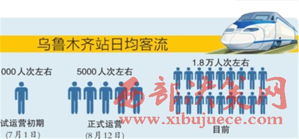 烏魯木齊站統(tǒng)計(jì)數(shù)據(jù)顯示,隨著始發(fā)終到列車增多、周邊公交線路增多以及知曉度提升,該站日均旅客發(fā)送量也由試運(yùn)營(yíng)初期的1000人次左右,到8月12日正式運(yùn)營(yíng)的5000人次左右,再穩(wěn)步增加到目前的1.8萬(wàn)人次左右。