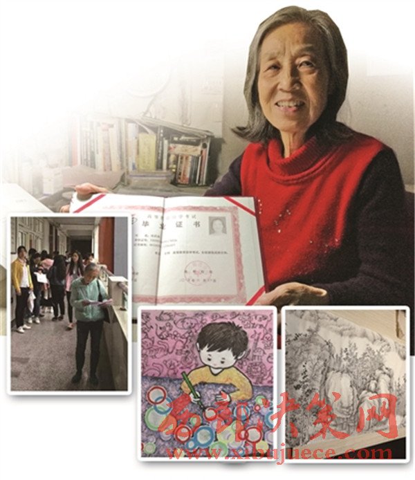 老人以前只有高中學(xué)歷,退休前在中巴車上做售票員,一直比較繁忙。退休之后,老人有了時間,就特別想去學(xué)習(xí)。于是,她去參加了老年大學(xué),學(xué)習(xí)美術(shù)技藝,這一上就是四年。2011年,她開始參加自學(xué)考試,由于高中學(xué)歷不能直接報考本科,于是她先報考了大專,選擇的是幼兒教學(xué)專業(yè)。經(jīng)過四年的努力,2015年6月,她終于拿到了大專文憑。老人自豪地向揚(yáng)子晚報記者展示了她的大專文憑。記者注意到,文憑上寫著:“劉若南參加學(xué)前教育專業(yè)??聘叩冉逃詫W(xué)考試,全部課程成績合格,經(jīng)審定,準(zhǔn)予畢業(yè)。”落款為高等教育自學(xué)考試委員會以及江蘇第二師范學(xué)院。