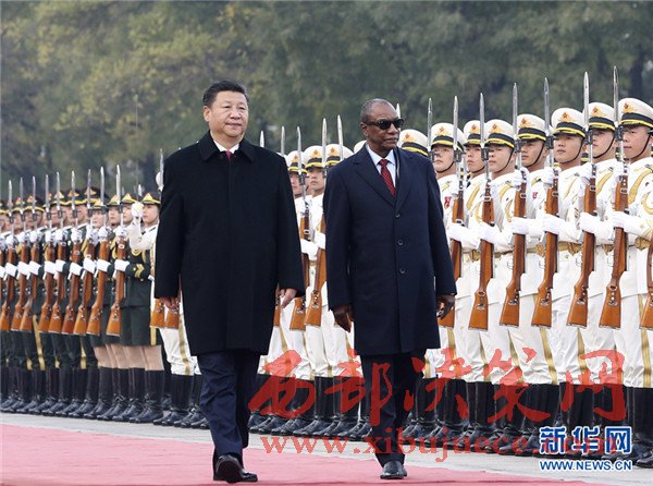 習近平指出,幾內(nèi)亞是撒哈拉以南非洲地區(qū)第一個同新中國建立外交關(guān)系的國家。57年來,雙方始終真誠友好、平等相待,在涉及彼此核心利益和重大關(guān)切問題上一貫相互理解和支持,兩國友好合作關(guān)系經(jīng)受住了國際風云變幻的考驗,歷久彌堅。中方愿同幾方一道,充分發(fā)揮兩國傳統(tǒng)友好和經(jīng)濟互補兩大優(yōu)勢,為發(fā)展全面戰(zhàn)略合作伙伴關(guān)系不斷注入新動力。