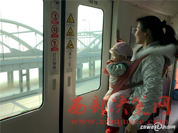 在試乘活動中,小妤成為了攝影師們的焦點(diǎn)。她一會兒看看左邊一會看看右邊,小手不停的揮舞。看見攝影記者的鏡頭,一邊揮手還一邊咿咿呀呀,一點(diǎn)也沒有怯場。據(jù)地鐵工作人員介紹,目前小妤是三號線最小的乘客。
