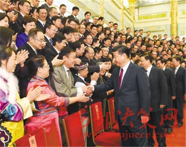 上午9時(shí)30分,習(xí)近平等來到人民大會堂金色大廳,同代表們親切握手,并合影留念。