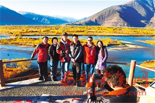 進入11月份以來,隨著降雨量的減少,尼洋河水開始變得清澈見底,河畔大片大片的柳樹逐漸泛黃,在藍天白云的映襯下,形成了一道道秀麗的美景,十分迷人,吸引了大批游客和攝影愛好者前來游覽、攝影。圖為游客在風景秀麗的尼洋河和雅魯藏布江交匯處合影留念。