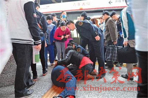 2015年5月13日早高峰時(shí)間段,沈陽(yáng)地鐵1號(hào)線青年大街站站臺(tái),一名74歲的老人在人群中因擁擠而摔倒。老人對(duì)涉事人說(shuō):“我有老保,我不訛人”。
