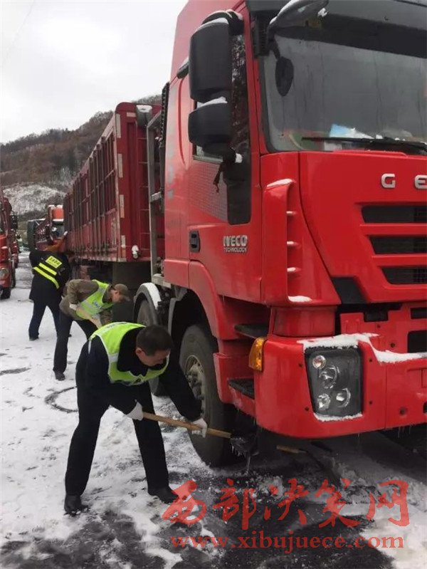 經(jīng)過一夜努力,全線目前已疏導(dǎo)爬坡困難車輛2000余輛,無安全事故發(fā)生,無人員傷亡事件,滯留司乘情緒穩(wěn)定,都在耐心等待道路疏通。西安到漢中方向高速已經(jīng)在今晨5點(diǎn)順利搶通。截止今天中午11時,澇峪口管制點(diǎn)以北積壓車輛4公里,已經(jīng)開始間歇放行;寧陜服務(wù)區(qū)管制點(diǎn)以南積壓車輛5公里,選擇分流210國道的部分車輛已從寧陜收費(fèi)站駛離西漢高速。秦嶺主梁附近路段西安方向多處擁堵點(diǎn)也已基本疏通,由于積壓車輛較多,路面有結(jié)冰,車輛行駛依然比較緩慢。