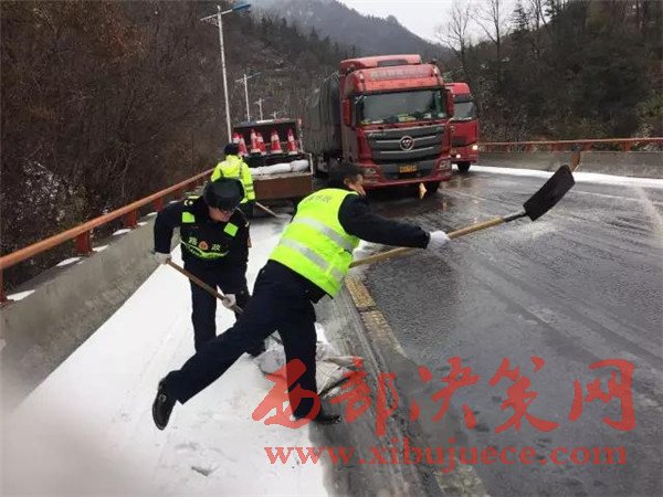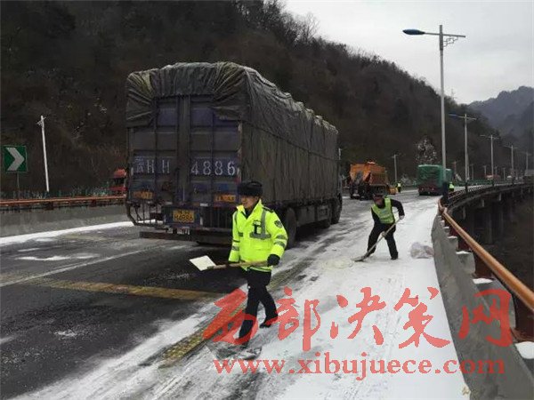 昨天寧陜境內(nèi)持續(xù)發(fā)布寒潮藍(lán)色預(yù)警,連續(xù)的雨雪、降溫、大風(fēng)造成最低溫度降幅10度以上,山區(qū)最低氣溫達(dá)到零下6度,對交通運(yùn)輸造成了較大影響。由于部分大型運(yùn)輸車輛沒有及時更換防凍柴油,油路受凍無法啟動,部分緩坡路面結(jié)冰,載重車輛原地打滑,還有個別車輛由于路面濕滑造成的單方交通事故等原因造成了大面積擁堵。