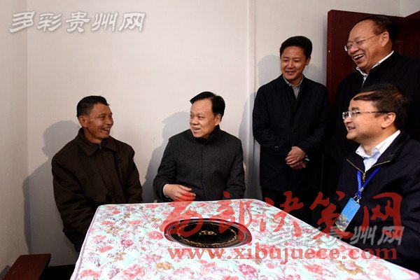 陳敏爾一行認(rèn)真聽取黔西縣綠化鄉(xiāng)馬坎村安置點(diǎn)“兩短”“兩長”的產(chǎn)業(yè)脫貧致富路子的介紹
