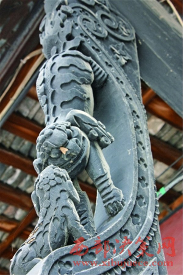 當(dāng)?shù)厝罕姺Q,原來(lái)的潘家大院,規(guī)模宏大。但歷經(jīng)80多年風(fēng)雨后,現(xiàn)保存下來(lái)的,僅為原有規(guī)模的四分之一左右。記者看到,大院的門窗、耳柱、耍檐上,全雕有精美的龍、鳳等吉祥物,以及小巧的獅子、異獸等,且造型各異。院壩內(nèi),柱礎(chǔ)上的石刻圖案,也頗具工藝水平。