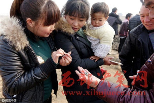 一村民告訴記者,昨天下午他和村里人路過河邊時,見到挖掘機司機在河岸上撿東西,走近一看是銅錢。“我回村一說,都知道了。”