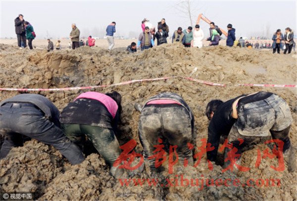 當天中午12點,中牟縣警方、文物所抵達現(xiàn)場,拉起了警戒線,對“挖寶”村民進行了疏散。
