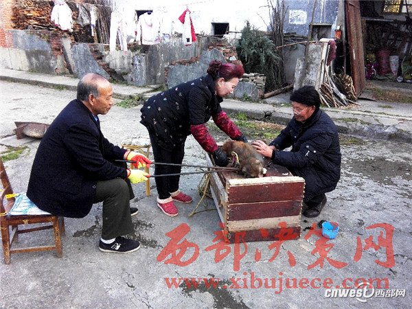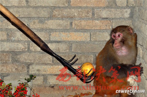 2016年12月8日,在寧強縣野生動植物保護站的工作人員耐心“勸慰”下,這只獼猴終于轉過頭來看著鐵叉上的蘋果。