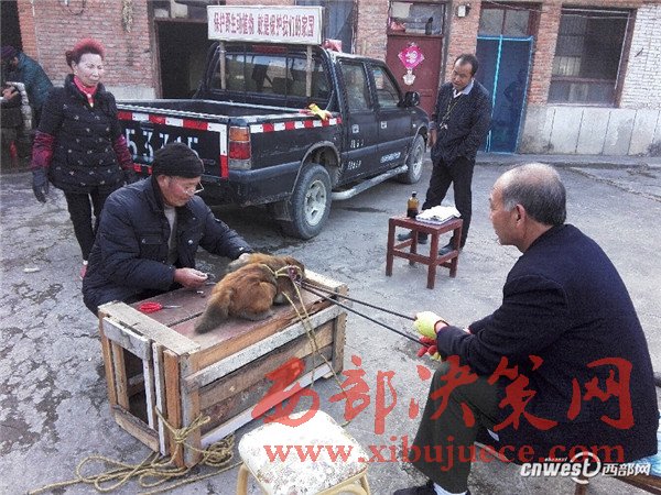 2016年12月7日,寧強縣獸醫(yī)站的醫(yī)生在為一只身受重傷的獼猴進行手術治療。