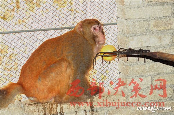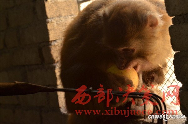 2016年12月8日,這只獼猴終于同意啃食寧強縣野生動植物保護站工作人員給它喂食的蘋果。