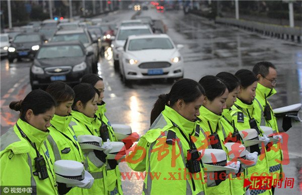在南京市中心新街口,十點整,隨著凌厲尖銳的防空警報在南京上空拉響,往日熙攘熱鬧的新街口變得靜止。車輛緩緩?fù)W。鲃峪Q笛致哀1分鐘。行色匆匆的路人也停下腳步在寒風(fēng)中低頭默哀。此刻,所有人共同緬懷在南京大屠殺中死難的同胞。