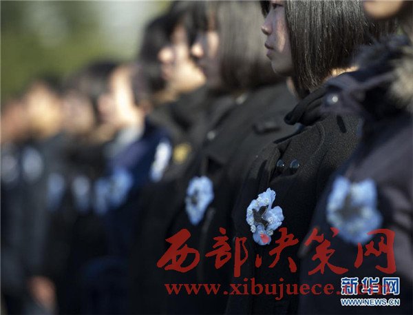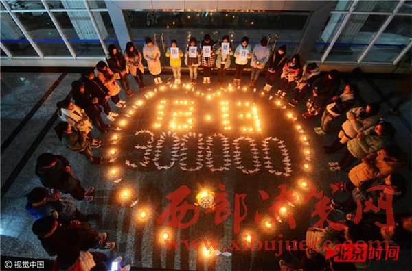 12月12日,江蘇省揚州市,揚州大學(xué)化學(xué)化工學(xué)院的學(xué)生們在祭奠南京大屠殺死難者。