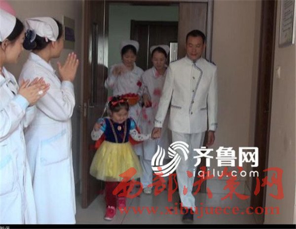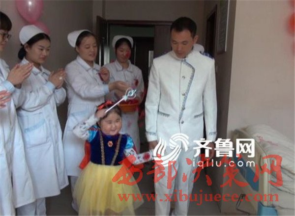 最終他們在醫(yī)院護士們的幫助下,決定給孩子辦一個特殊的婚禮,美麗的“小海青”公主嫁給了她的“白馬王子”。