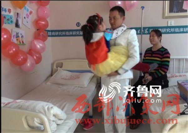 14日上午,山東泰安的小海青“結(jié)婚了”,新郎竟是她的父親。看到這,你一定覺得匪夷所思,可事情就是這個樣子。如果再講述詳細點,“婚禮”的時間是在小海青的第二個病危通知書下達不久,地點設(shè)在病房里,參加“婚禮”的人,只有大夫、護士和病友……