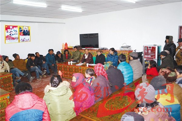 12月23日,那曲地區(qū)安多縣扎仁鎮(zhèn)納色居委會黨支部和西藏日報社駐納色居委會工作隊(duì),在社區(qū)村級組織活動場所舉行黨的十八屆六中全會和自治區(qū)第九次黨代會精神宣講報告會。納色居委會黨員、干部、群眾共60多人聆聽宣講報告。納色居委會群眾阿吉、索南彭措等聽了報告后表示,在以習(xí)近平同志為核心的黨中央和以吳英杰同志為班長的自治區(qū)黨委的堅(jiān)強(qiáng)領(lǐng)導(dǎo)下,在社會主義祖國大家庭中,一定要感黨恩、聽黨話、跟黨走。