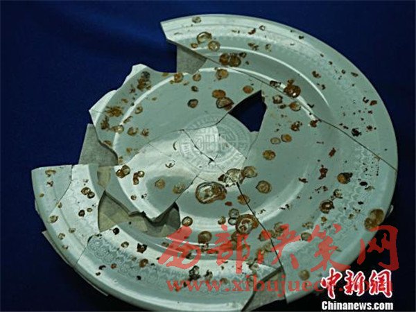 剛出水的“致遠”餐盤,型制為寬平沿,淺弧腹、盤心平、圈足。盤心有篆書“致遠”二字,外圈為字母,上半圈為“CHIH YüAN”(致遠威妥瑪拼音),下半圈為英文“THE IMPERIAL CHINESE NAVY”,組合成一個圓形徽標。