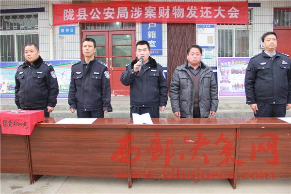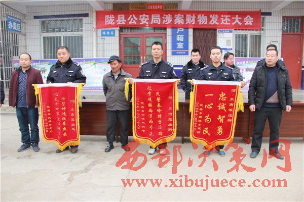 西部決策網(wǎng)訊(帥華鋒 杜杰 通訊員 邢亞洲)12月29日中午,隴縣公安局東南派出所召開贓物發(fā)還大會,為群眾發(fā)還現(xiàn)金44620元,群眾放起了鞭炮送來感謝信和錦旗表示感謝。。