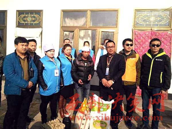 1月13日,寧夏海興義工聯(lián)合會(huì)銀川辦事處的工作人員來(lái)到銀川市賀蘭縣南梁臺(tái)子鐵東村、鐵西村,慰問當(dāng)?shù)?戶孤寡貧困家庭,捐贈(zèng)米面油和棉衣等生活物品,  “大娘,還有半個(gè)月就過(guò)年了,這是咱們企業(yè)的一點(diǎn)心意,祝您老身體健康,吉祥如意”。這次慰問空巢老人和貧困家庭的單位有:銀川培訓(xùn)學(xué)院、銀川美年大健康體檢醫(yī)院、海原馬軍飯莊、搏港旅游公司、寧夏雙玉農(nóng)業(yè)科技有限公司、寧夏塞杞源苗木專業(yè)合作社。今年年初,他們根據(jù)南梁臺(tái)子鄉(xiāng)提供的貧困戶名單,結(jié)合入戶走訪,最終確定了馬寶林、馬萍霞等8戶殘疾、孤寡貧困家庭。由寧夏蕊杰伯港旅游有限公司、 銀川美年大健康體檢醫(yī)院等7家協(xié)會(huì)成員企業(yè)共同出資購(gòu)買生活物品,逐戶慰問,反哺社會(huì)。