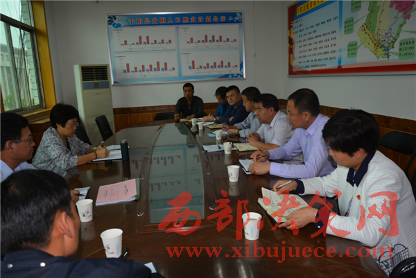 縣委書記何玲與縣脫貧攻堅(jiān)領(lǐng)導(dǎo)小組辦公室工作人員研究脫貧攻堅(jiān)工作.