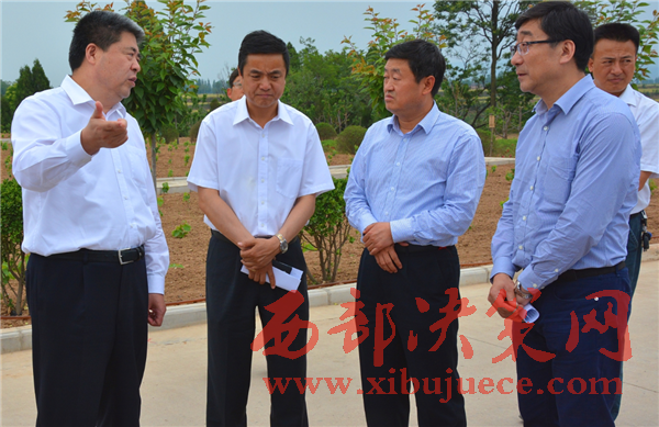 縣委書記何玲縣長(zhǎng)張新科在搭載式扶貧試點(diǎn)企業(yè)千陽(yáng)縣海升蘋果給檢查的上級(jí)領(lǐng)導(dǎo)匯報(bào)工作.