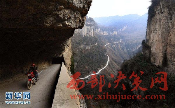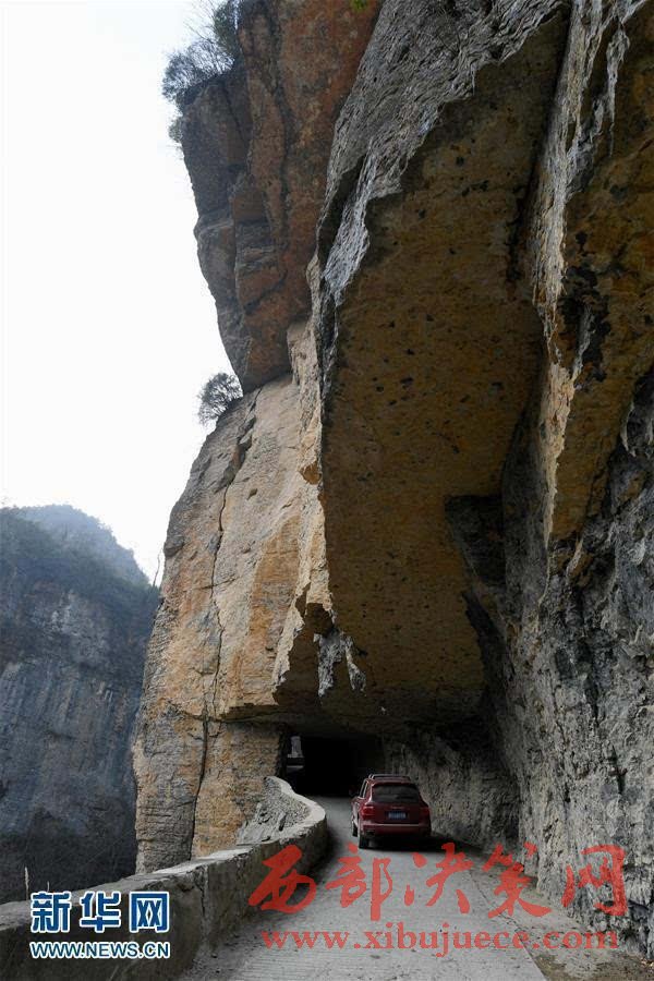 在巴山深處的陜西省寧強(qiáng)縣內(nèi),有一段在懸?guī)r上開鑿的掛壁公路,連通毛壩河鎮(zhèn)和西方溝村。這條公路是西方溝村全村干部群眾自行設(shè)計(jì)修建的。曾經(jīng),西方溝村的村民要翻山越嶺約2個(gè)小時(shí)才能到達(dá)公路乘車出行;現(xiàn)在,當(dāng)?shù)卮迕裰恍枳呱?0分鐘就能乘車外出。