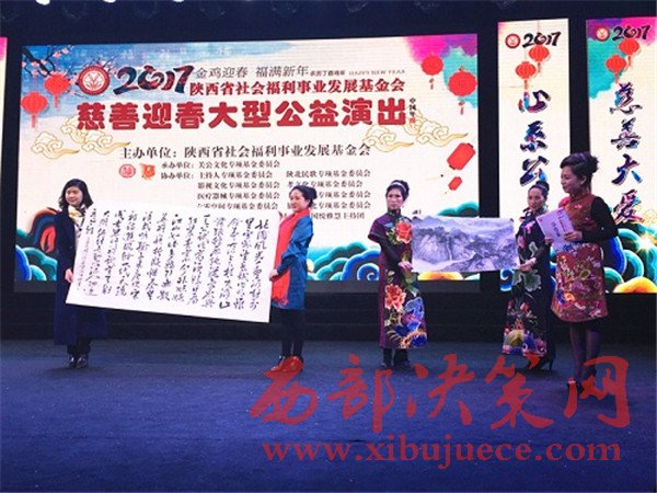 晚會(huì)上不僅有流連忘返的歌舞表演,同時(shí)眾多書(shū)畫(huà)大家也在晚會(huì)現(xiàn)場(chǎng)一一亮相。其中,中國(guó)著名書(shū)法家林中陽(yáng)先生還捐贈(zèng)了巨幅作品兩幅,助力本場(chǎng)晚會(huì)。此外,陜西宏源床上用品有限公司總經(jīng)理周星雷向本次晚會(huì)現(xiàn)場(chǎng)捐助人民幣10000元,以表達(dá)企業(yè)對(duì)慈善公益事業(yè)所盡的一份綿薄之力。