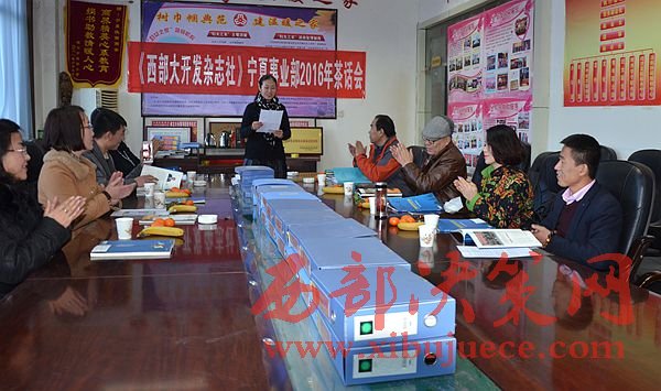 西部決策網(wǎng)訊 1月20日下午,西部大開發(fā)雜志社寧夏事業(yè)部2016年年終茶話會在銀川舉行。來自銀川電視臺、書法協(xié)會、演出協(xié)會等單位的代表們與本社寧夏事業(yè)部的工作人員匯聚一堂,為西部大開發(fā)雜志社寧夏事業(yè)部的發(fā)展建言獻策。