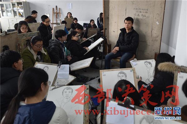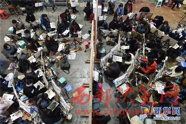 2月7日,考生在中國美術(shù)學院的杭州考點參加圖像與媒體藝術(shù)類的色彩科目考試。當日,為期4天的中國美術(shù)學院2017年本科專業(yè)招生考試在杭州、鄭州、成都、深圳、沈陽等5座城市的考點開考。據(jù)了解,今年報考中國美術(shù)學院的考生有約6.5萬人,計劃錄取本科生1588名,錄取比例超過40∶1。