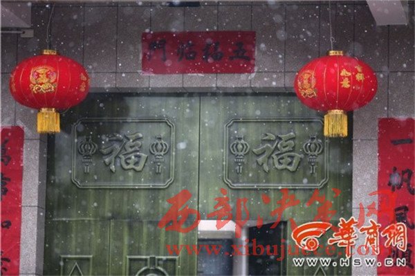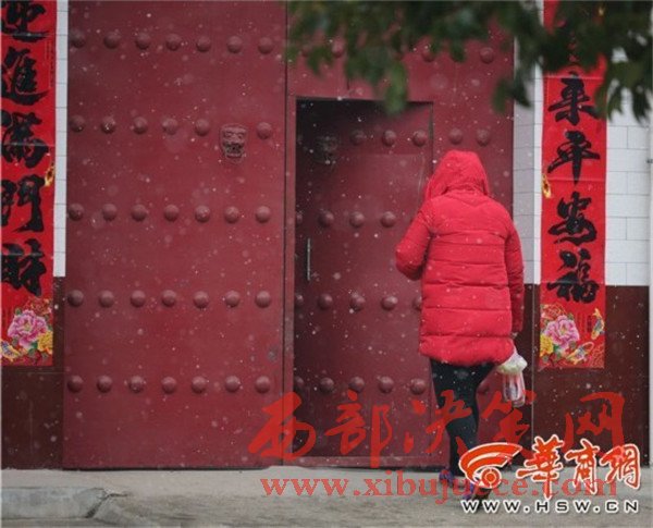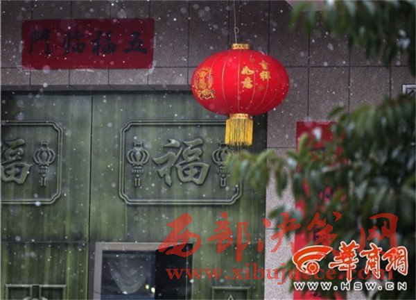 在高陵區(qū)一家農(nóng)戶門口,瑞雪與燈籠、對聯(lián)相應,也有了過年的氣氛。