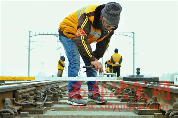 西安鐵路局綏德工務段職工檢查線路鋼軌狀況。該段通過機車添乘和徒步檢查等方式,加大對凍害、道岔等地段檢查力度,對發(fā)現(xiàn)問題,根據嚴重程度,及時申請臨時要點進行整治,確保春運期間運輸安全。