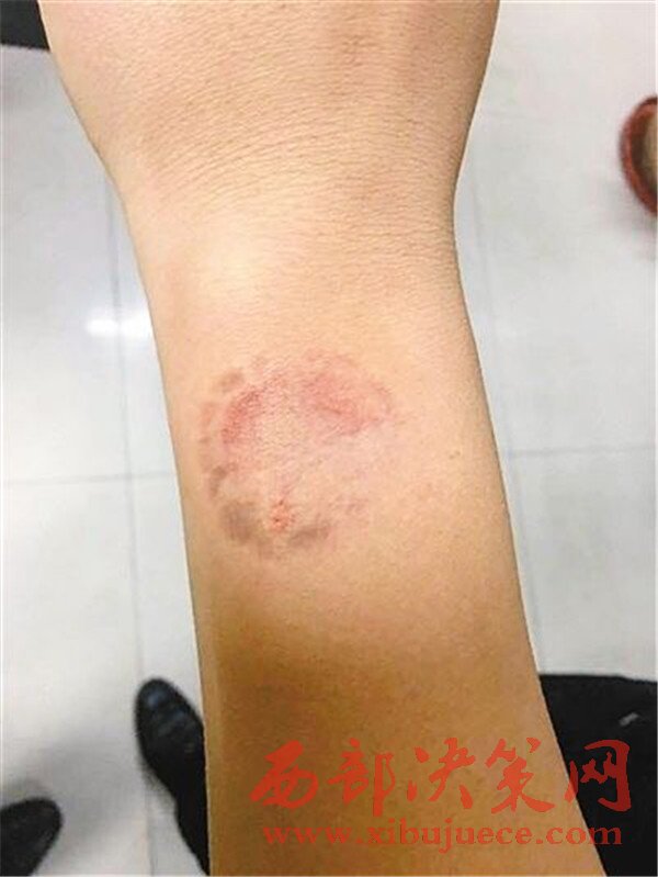中隊(duì)民警翟偉、秦偉在將楊某帶離車輛的過程中,楊某突然咬住民警翟偉的左手腕處,經(jīng)民警現(xiàn)場(chǎng)多次警告仍不松口,在隨行輔警等人協(xié)助下,最終將楊某帶離車輛進(jìn)行了尿液檢測(cè),而民警翟偉的左手腕處卻留下了清晰的牙印。