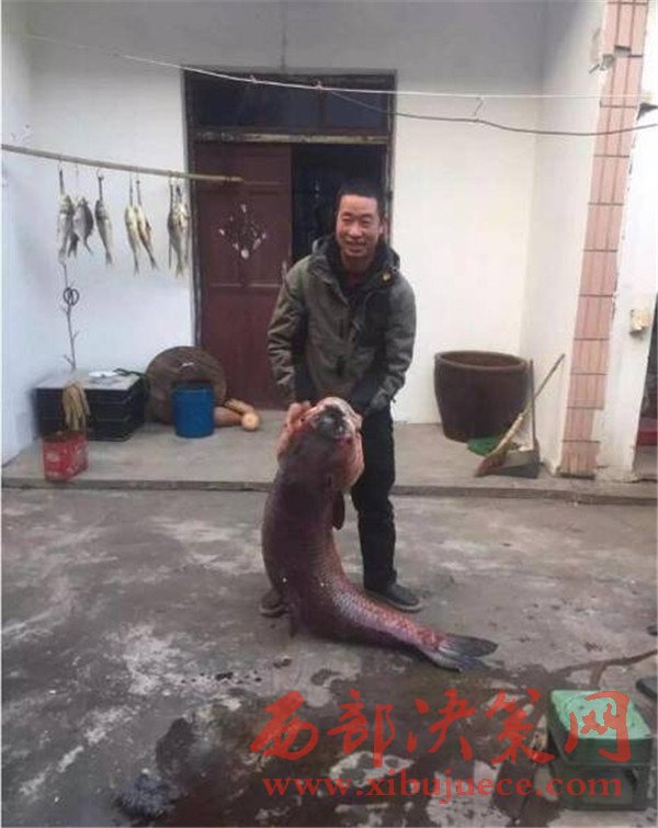 2017年2月13日報道,江蘇鹿苑的邱大哥平時喜歡釣魚,春節(jié)期間,他閑來無事,便約上幾個親朋好友到雙山島垂釣,結果釣到了一條凈重52.2公斤(約104斤),長1.27米的烏青魚。