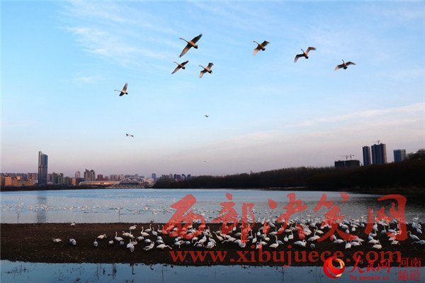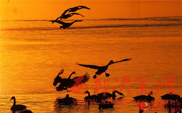 每年11月至來年2月,都會有數(shù)以萬計的白天鵝,從遙遠的北方經(jīng)過長途遷徙來這里棲息越冬,因此三門峽市被譽為“天鵝之城”。在三門峽市天鵝湖城市濕地公園雙龍湖白天鵝觀賞區(qū)波光粼粼的湖面上,數(shù)千只白天鵝自由自在地飛翔,或安詳優(yōu)雅地結伴嬉戲,或溫情脈脈地交頸摩挲,或悠閑自得地以嘴梳理羽毛,或頸扎水中,翩翩跳起“芭蕾舞”。這些圣潔的仙鳥,或飛、或游、或走、或臥,千姿百態(tài),構成一幅幅美麗動人的畫面。