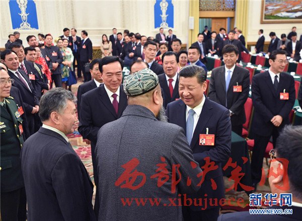 2017年3月10日,習(xí)近平在新疆代表團參加審議時說,要全面貫徹黨的民族政策,高舉各民族大團結(jié)旗幟,引導(dǎo)各族群眾增強對偉大祖國、中華民族、中華文化、中國共產(chǎn)黨、中國特色社會主義的認同,像愛護自己的眼睛一樣愛護民族團結(jié),像珍視自己的生命一樣珍視民族團結(jié),像石榴籽那樣緊緊抱在一起。