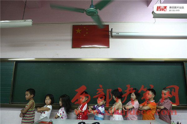 2013年9月3日,東莞光明小學,一年級住宿新生在晚自習時被叫去講臺上練習排隊。寄宿制學生的夜晚通常被無聊的晚自習占據(jù)。辦學條件跟不上,生活管理人員缺乏,使得農(nóng)村寄宿制學校大多以看管為主,管理水平基本維持在低水平狀態(tài)。課外活動、心理關愛都無力經(jīng)營。