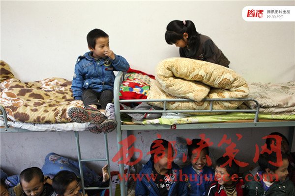 教育公益組織歌路營的數(shù)據(jù)顯示我國基礎教育階段寄宿制學生數(shù)量達3276萬,其中60%是留守兒童。2015年,歌路營發(fā)布了《中國農(nóng)村住校生調查報告》,在走訪了幾百所農(nóng)村寄宿校后,報告用“擠、險、臭”來形容農(nóng)村孩子糟糕的住宿環(huán)境。圖為2012年11月,浙江松陽縣大東壩鎮(zhèn)中心學校,住校的人太多床鋪緊張達不到一人一床的標配,常常安排兩個孩子睡在一起。